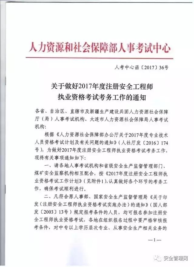 关于做好2017年度注册安全工程师执业资格考试考务工作的通知